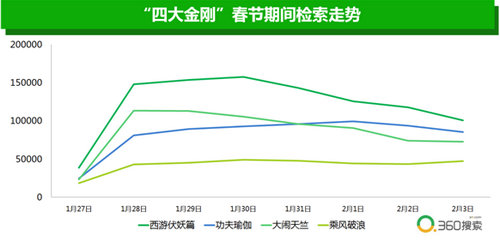 如今,春节长假结束,360搜索根据春节期间网友的搜索指数,对这四部影片进行了大数据分析。