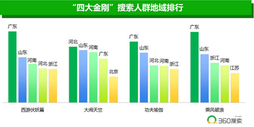 从搜索人群地域分布来看,广东人给了《西游伏妖篇》最多的支持,看来网上那些号称欠星爷一张电影票的人中,广东人不在少数。