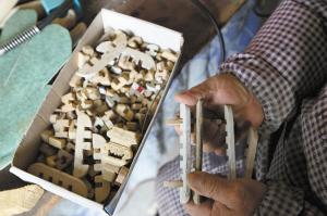 在制作花灯上方边缘时,老人遇到了困难。这里每块木料拼接点误差必须在一毫米以下,豁口小了,插不进去;豁口大了,插上去还要掉下来。“刚开始往上拼的时候,老是歪歪斜斜的,拼不整齐,我就让我儿子,专门拉着我去正定大佛寺看了看,那儿的大殿都是古时候的,站在里面我抬头看了半天。回来以后,我按照大殿的屋顶,终于把这‘房檐’拼好了。”