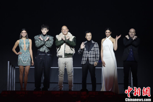 中新网2月10日电 2月9日,由美国派拉蒙影片公司出品的年度动作大片《极限特工:终极回归》中国首映礼在北京盛大举行。导演D•J卡卢索携主演范•迪塞尔、甄子丹、迪皮卡•帕度柯妮、吴亦凡以及妮娜•杜波夫惊艳亮相,点燃中国粉丝的热情。