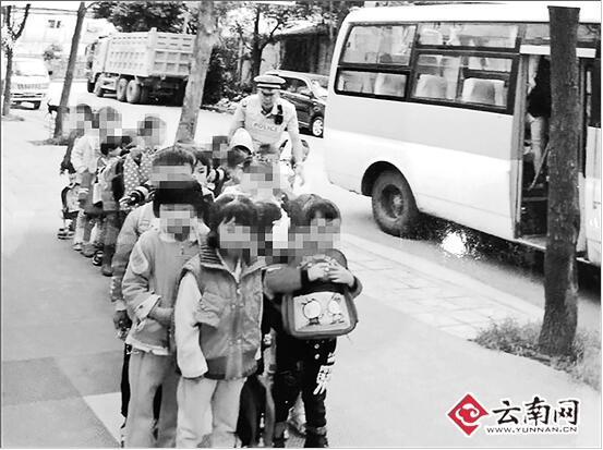 去年9月7日校车被查处后,交警安排转运小朋友。
