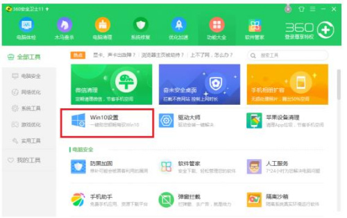 首先,你需要在官网或Win10应用商店下载安装最新版的360安全卫士,并在功能大全中选择“Win10设置”功能;