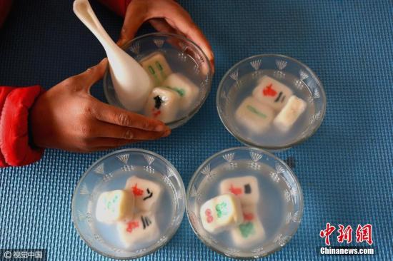 2月8日,山东聊城,元宵节临近一网友在自己朋友圈晒出创意十足的“麻将汤圆”。 王登虎 摄 图片来源:视觉中国