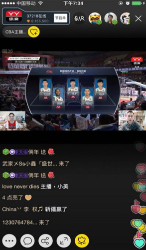 可以发弹幕、参加战队,组团吐槽PK的CBA直播就在YY LIVE 体育频道,2月10日晚19点20分,频道36不见不散。