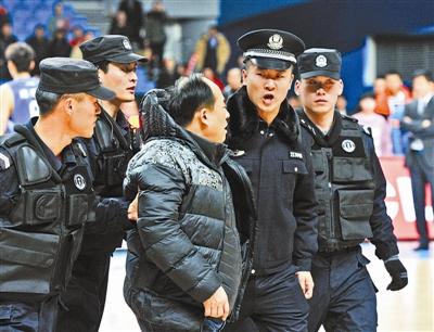 前天晚上,CBA江苏同曦队主场输给江苏肯帝亚队的比赛尾声发生了一场世界篮坛都很罕见的闹剧:同曦球员唐正东情绪激动吃到技术犯规,队长冯欣与裁判有肢体接触被夺权下场,而江苏同曦队的投资人陈广川则抢过技术台话筒怒斥裁判:“有这样的裁判,中国篮球永远没有希望!”更令人啼笑皆非的是,同曦队的副董事长吕平在比赛还没有结束时进入场地,试图抢夺裁判手中的篮球,最后他被赛场安保人员带出了场地(上图)。