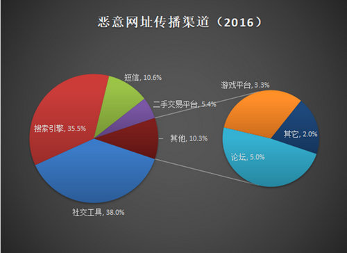 2016年,钓鱼网址通过社交工具传播的比例首次超过搜索引擎。这意味着,来自朋友圈、微博、陌陌等社交平台的链接,更加需要提高警惕。