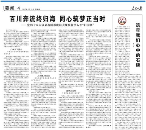 新华社则总结称,开放的中国正鼓励和吸引着优秀海外人才将个人梦想融入国家梦想,为“两个一百年”奋斗目标和中国梦的实现汇聚力量。
