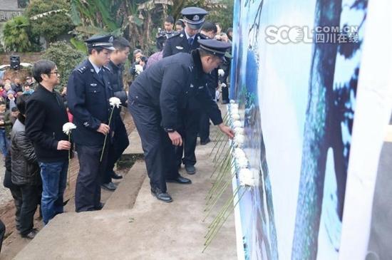 四川在线消息(刘军 记者 唐泽文 文/图) 2月24日,英雄蔡松松同志追思活动在泸州市泸县玄滩镇幸福水库举行。泸县派出所成员、机关干部职工、群众代表、师生代表60余人参加此次追思活动。