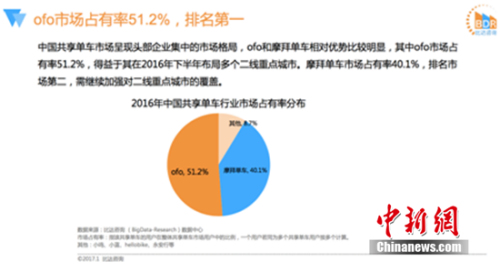 此前比达咨询发布的《2016中国共享单车市场研究报告》曾指出,ofo 以 51.2%市场占有率,稳居行业第一。同时其在城市覆盖数和单车投放量两项关键指标中,也大幅领先行业其他企业。据了解,ofo 已覆盖全国34座城市,投放超过 100 万辆单车。