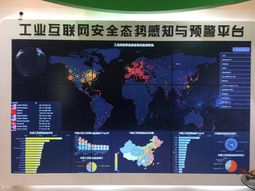 图:360企业安全集团展示“工业互联网安全态势感知与预警平台”