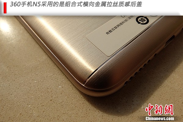 拿到360 手机 N5,依旧坚持简洁、对称、有序的设计,不管是从正面还是背面看视觉高度统一。 同时N5采用比上一代弧度更大,手感更佳的 2.5D玻璃。N5流光金则采用拉丝工艺,将整个机身高光拉丝,突出了金属独有的质感。