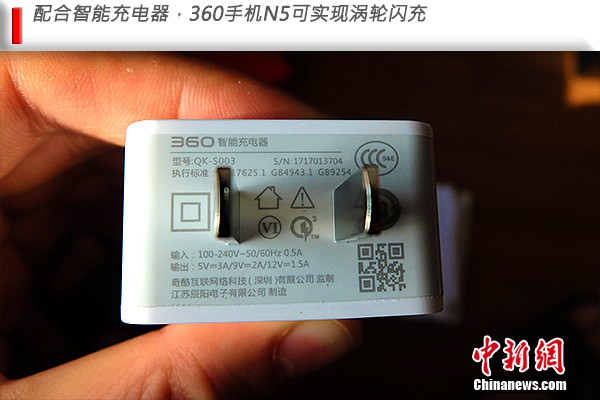 另外,一个“快”就是360 手机 N5 高通 QC3.0 快速充电技术,配合智能充电器的 9V2A 的电压分配,QC3.0 快充模式仅需 90 分钟即可充满 100% 电量。