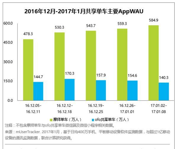 更多的APP下载量、更高的使用频次、更长的使用时间、更多的活跃用户,都显示了摩拜单车在用户体验、车辆管理和平台运营方面的硬实力。