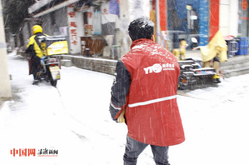 记者随后又探访圆通速递的多家网点,发现各家网点均在正常派送快件中。其中,在东四十条桥附近的一个居民区,记者见到了正在冒雪送件的圆通新中西街网点的快递员小牛。他的快递车上已经积了厚厚的一层白雪,头上身上都是积雪。小牛骑车到了一幢6层居民楼外,把车停好后,从车上抱下一个大纸箱子和几个小件,然后抱着这些快件小跑着进楼送到客户家中。他送完这些快件,回到快递车旁时,车座上已经落下了一层积雪。他用手拂掉积雪,又骑车赶往下一个送件地点。“我会把今天的快件都送好。”小牛挥着手说。