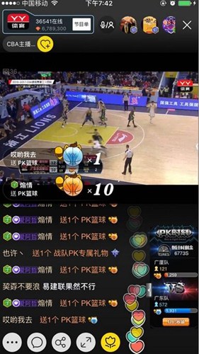 可以发弹幕、参加战队,组团吐槽PK的CBA直播就在YY LIVE 体育频道,2月24日晚19点20分,频道36不见不散。