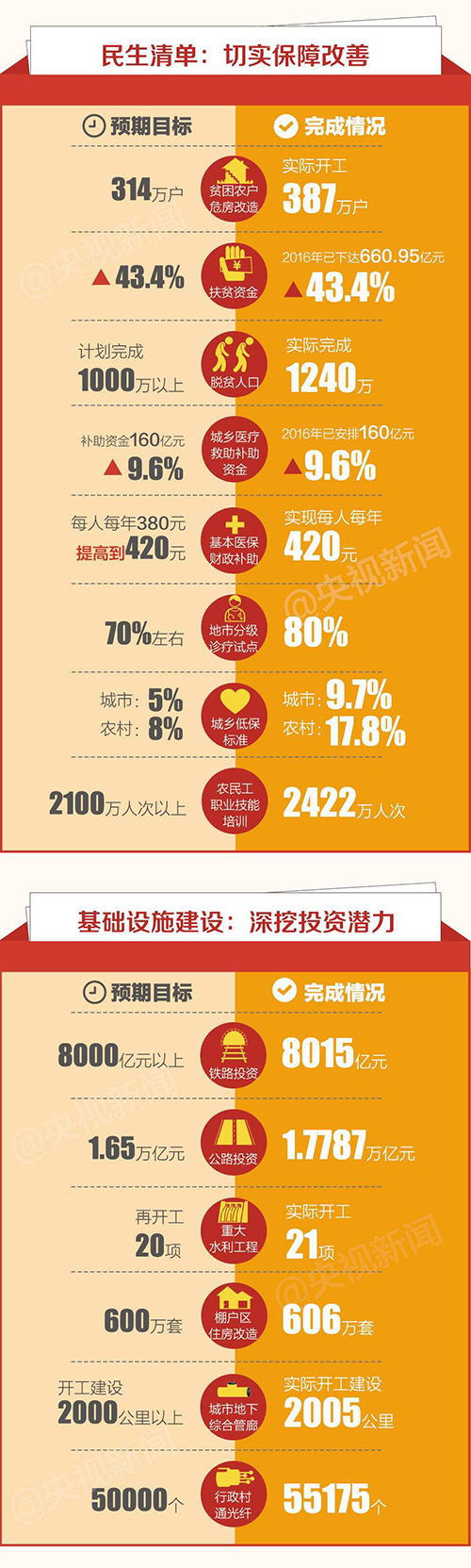 2017年中国“两会”时间已经开启。3月1日,国务院公布了2016年《政府工作报告》量化指标任务的落实情况,三十多项硬指标中,有的达标完成,有的超额完成。接下来,小编就带你来逐一“对账”,看看这份有关我国经济社会发展的答卷,你给打几分?