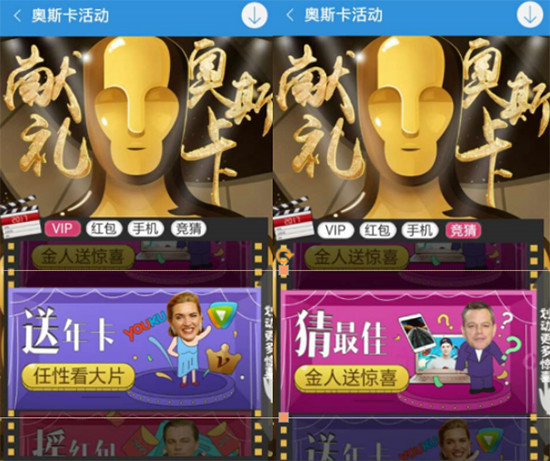 喜欢看大片的你,一定不能错过“送年卡”任性看大片活动,该活动的奖品包括爱奇艺、腾讯视频、优酷视频VIP尊贵年卡和神秘的幸运福袋,活动采用刮奖形式,活动期间每人每天有3次刮奖机会,奖品即开即得,刮出年卡,奥斯卡精彩大片就能免费任性看喽!