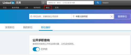 领英推出的“隐身求职”功能让职场人能够主动释放跳槽信号,又免于被当前雇主察觉。用户登陆领英主页,点击菜单栏的职位按钮后再点击进入职位偏好,开启公开求职意向并选择感兴趣的工作机会后,HR和猎头就会轻松找到求职者。开启此项功能的用户不用担心当前雇主会发现自己的小动作,领英会运用大数据算法将被雇主发现的风险降到最低。