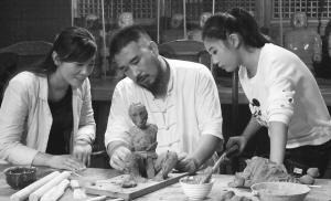 ■河北省工艺美术大师马若特(中)进行泥人创作。