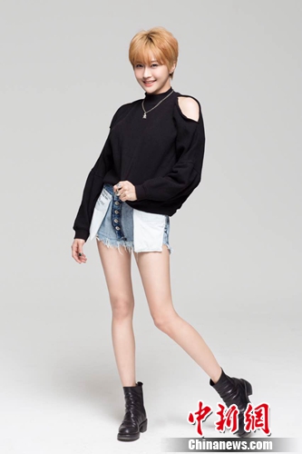 中新网3月13日电 近日艺人陈冰曝光了一组全新的时尚大片,照片中她身穿宽大的黑色卫衣小露香肩,慵懒的同时又透露着一丝小女人的妩媚,俏丽的金色短发不失个性,水洗白流苏牛仔短裤时尚俏皮,扣子与口袋的设计充满设计感,与低跟黑色短靴的搭配更衬托出陈冰的身材比例与好肤色。帅气与妩媚共存,演绎早春新时尚。