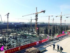 探访当日,北京晨报记者走过一条长长的甬道来到临边防护围栏前,60万平方米的超大体量施工现场着实令人震撼。13台塔吊在施工现场不同部位不停挥动着长臂,完成着一次次超大跨度的运输吊装。绿色的运输卡车正在川流不息地进行着土方回填,一片井井有条的繁忙景象。据现场工作人员介绍,目前,地下结构施工已临近尾声,预计5月底前全部完成。