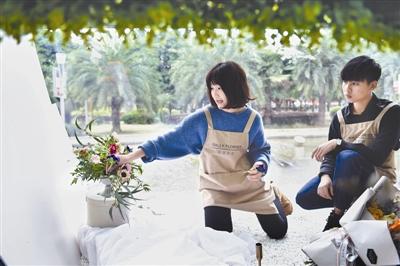 在福建省福州市中心一家咖啡店的一角有一间别致的花艺工作室,陈莹莹就是这间花艺教室的主创人之一。新华社记者 宋为伟 摄