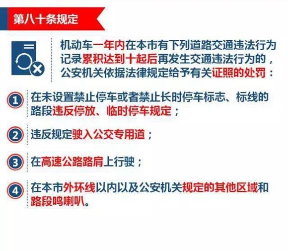 东方网记者徐程3月20日报道:新修订的《上海市道路交通管理条例》将于3月25日正式实施,与1997年的原条例相比,新版八成以上的条款都是新内容。开车不得浏览电子设备、未满12周岁不能坐副驾驶位、累积5起交通违法逾期未处理可扣行驶证……