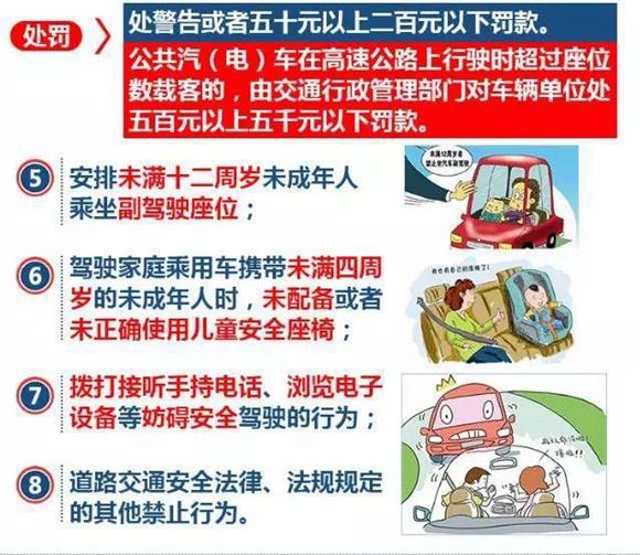 新《条例》增设了消除交通安全隐患的条款,例如规定驾驶机动车上道路行驶,不得有“拨打接听手持电话、浏览电子设备等妨碍安全驾驶的行为”;“机动车乘坐人在配有安全带的座位就座时,应当使用安全带”;“不得安排未满十二周岁未成年人乘坐副驾驶座位”等。此外,新《条例》对买分卖分等行为也加重了处罚。