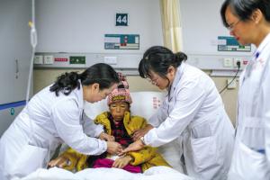 医生给马凤珍检查伤口