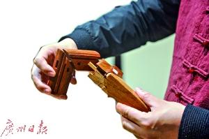 “检查榫卯最好的方法就是仔细查看转角链接部位。”泓御轩的赖江泽拿出一根桌面转角处的榫卯给我们示范合格的榫卯。一根一根拉下横竖各种构件,小小的一角竟可以拆下近10个部件,装上去以后却严丝合缝。