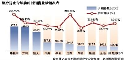 今年以来,上市房企的销售继续保持高增长态势。据记者不完全统计,截至目前,共有34家上市房企公布了今年前两个月的销售业绩,其中有7家房企销售金额增长超过100%;11家房企销售金额增长超过50%。
