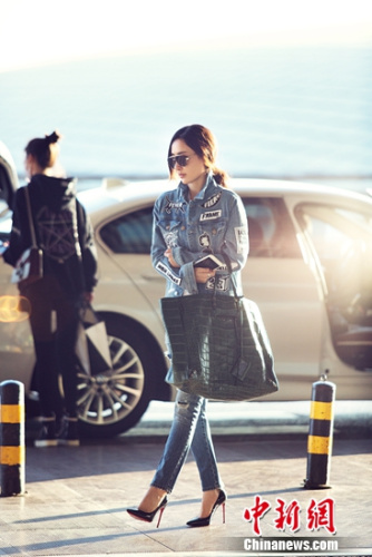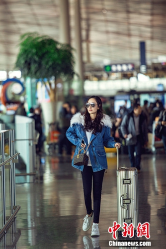 中新网3月16日电 近日,演员孙宁曝出两组街拍,时而俏皮时而淑女。蓝色牛仔外套上的白色印花是年轻的韵律,搭配墨绿色包包将步调放轻。