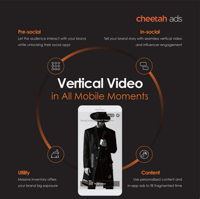 猎豹移动SVP、海外商业事业部负责人肖洁说,“Cheetah Ads所提供的垂直视频广告形态,能够覆盖每一个移动场景。垂直视频已成为移动广告行业的趋势。相比横屏视频广告,垂直视频更符合用户在移动环境下的观看习惯,融入猎豹丰富的产品信息流后,广告体验更加无缝、无打扰。再结合我们的个性化推荐技术,Cheetah Ads可以为品牌广告主精准定位目标受众,也能为用户带来更加原生的广告体验。”