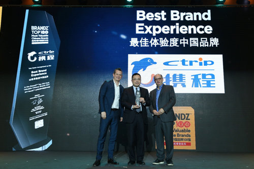 中新网3月21日电 3月20日,2017 BrandZ™TOP100盛典在北京召开,2017 BrandZ™最具价值中国品牌100强榜单随之开启。携程旅行网位列榜单第38位,较2016年上升了6位,品牌价值达到了22.60亿美元,较去年增长32%,并成为唯一一家入选榜单前50的在线旅游服务企业。此外,携程旅行网高级副总裁汤澜代表携程领取了“最佳体验度中国品牌”奖。