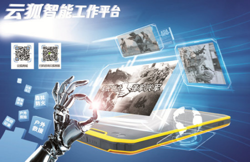 基于云狐强大的技术能力,2017年起,云狐已经参与开发了多个军事通信指挥系统,并自己投资独立开发多功能单兵作战指挥系统。秉承着新技术、新平台、新效能的开发理念,结合云、大数据、北斗卫星导航、大S卫星通讯、物联网NB_IOT技术,开发了基于SAAS云平台的多功能可穿戴单兵作战系统,系统由单兵作战云平台、士兵可穿戴终端、现场指挥员手持终端三部分组成。士兵可穿戴设备基于北斗一代开发,拥有摄像功能,现场指挥员手持终端拥有手机和大S双通信系统,拥有北斗导航功能。现场指挥员手持终端与士兵可穿戴设备既可以通过云端完成指挥,也可以通过433军网完成。可穿戴终端和手持终端达到最高三防IP68等级,实现了装备的小形化,方便训练和作战中使用。