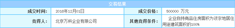 2016年12月1日,经过16轮报价,万科以50亿拿下海淀区“海淀北部地区整体开发”永丰产业基地(新)HD00-0401-0062、0166、0158地块。同一天,万科与北京金第联合以59亿拍下海淀区“海淀北部地区整体开发”永丰产业基地(新)HD00-0401-0132、0120、0162地块。