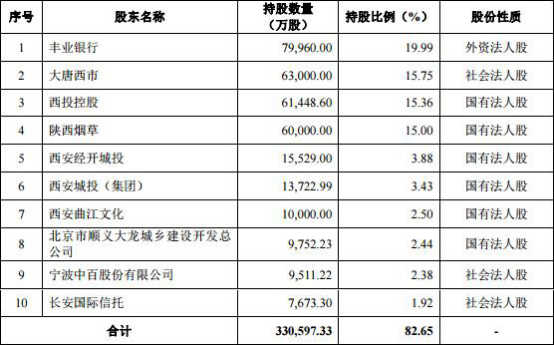 西安银行前十大股东(截图自西安银行招股书)