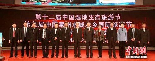 会议最后,与会领导和嘉宾共同启动“三节”开幕发布仪式,向四海宾朋发出春天的邀请:第十二届中国湿地生态旅游节、第九届中国泰州水城水乡国际旅游节、2017中国泰州姜堰溱潼会船节将于4月7日在姜堰溱湖盛大开幕,诚邀海内外宾朋走进姜堰、畅游溱湖,一同领略水乡美景、一道感受文化韵味。