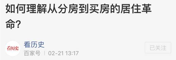 想尽快的在百家号平台成长起来,我们不一定要成为标题党来盗刷流量。首先标题与我们输出的文章核心应该相匹配,再此基础上试着让题目更有亮点,只有这样才能在百家号平台获得细水长流式的关注。比如《如何理解从分房到买房的居住革命》,这个标题的亮点在于每年春节前后北上广的人都会讨论买房这个问题,所以我们就从“居住革命史”的角度,出了这样一篇文章。切中实事,将历史经验运用到日常生活中来,这比转身做“标题党”更重要。