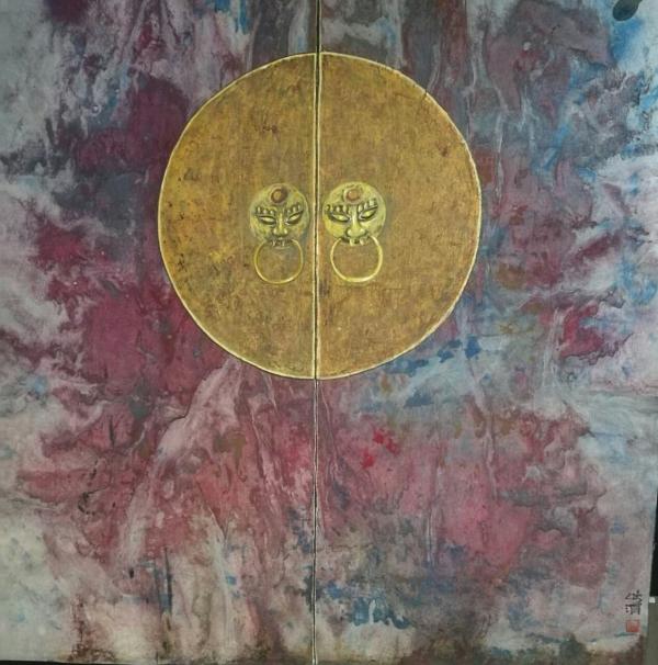 描绘作品时,画家习惯用暖色。她大胆地使用红色和黄色,与水墨相融合,再辅以青色、白色制作出流状的肌理,形成近乎厚重却又不失闪动的视觉效果。这种创新的艺术手法更充分地表现出“门”庄严祥瑞的特点。