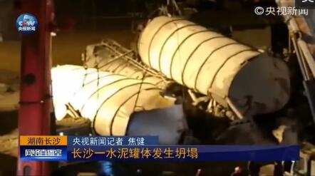 【长沙一水泥罐体坍塌 仍有3人失联】今天14:45左右,湖南长沙建坤混凝土有限公司水泥罐体发生坍塌事故,造成4人失联。16:10左右,被困人员许波被救出,送医救治,没有生命危险。现场仍有3人失联,目前救援仍在继续。(央视记者焦健)