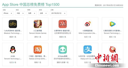 中新网3月22日电 3月21日,ofo小黄车正式宣布,近期日订单量已突破1000万,成为中国第四家日订单量过千万的互联网平台。数据显示,近一个月以来,ofo 登顶App Store中国榜总榜第一18次、旅游榜第一26次,创造了App store中国榜登顶榜首次数最多的纪录。