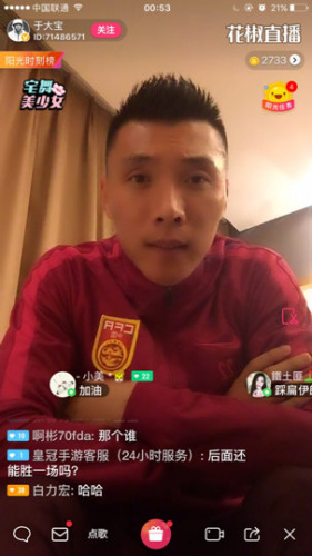 3月23日,注定是国足历史上一个值得铭记的日子。世界杯预选赛中韩大战上,福将于大宝在第35分钟的一粒进球彻底点燃了整个中国。赛后,于大宝第一时间在花椒直播开播与网友分享赛后心得,自曝已有女朋友,直播间一时一片“哀嚎”。