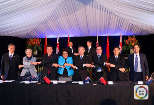 出席签字仪式的中新两国代表笑靥如花,兴奋地交叉握手。在两国总理见证下,他们签署了9份合作协议,包括关于“一带一路”合作的谅解备忘录,由此,新西兰成为首个同中国签署此类协议的西方发达国家。