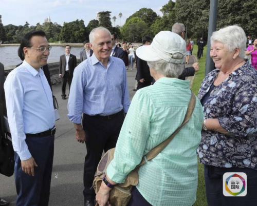 悉尼是澳大利亚最大城市,也是克强总理此次访澳的第二站。当地时间25日,正在悉尼访问的克强总理与澳大利亚总理特恩布尔把外交舞台从会场“搬到”了户外。在正式会晤“连轴转”的间隙,两国总理得以放慢脚步,于谈笑间规划未来。克强总理和特恩布尔总理散步途中遇到在此休憩的市民,不时停下来与他们交谈。