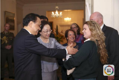 在22日抵达澳大利亚当天,克强总理在澳大利亚《澳大利亚人报》发表的《推动中澳关系向前走》署名文章中明确提到:我听说,澳大利亚选择了两种澳特有的动物——袋鼠和鸸鹋作为自己的国徽图案,因为它们一般只会向前走,不轻易后退,象征着一个永远迈步向前、充满活力的国家。