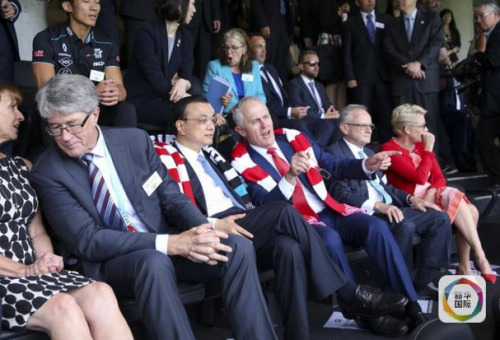 澳式足球,以比赛节奏快、对抗激烈、观赏性强而闻名,是澳大利亚最受欢迎的运动之一。当地时间25日下午,克强总理与特恩布尔在悉尼观看了澳式足球联盟劲旅悉尼天鹅队与阿德莱德港队的比赛。
