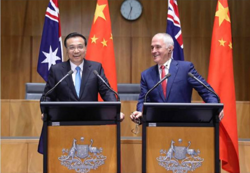 在当前逆全球化暗流涌动,贸易保护主义有所抬头的背景下,自由贸易成为克强总理大洋洲之行的关键词。中澳同意,打造两国自贸繁荣时代;中新决定,在中国与发达国家中率先启动自贸协定升级谈判。