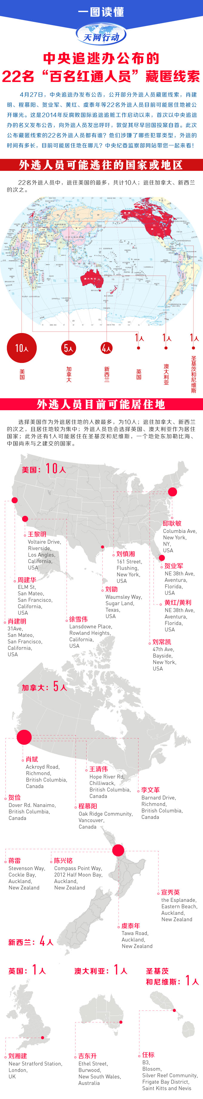 中央追逃办通报部分外逃人员藏匿线索 近半数在美国
