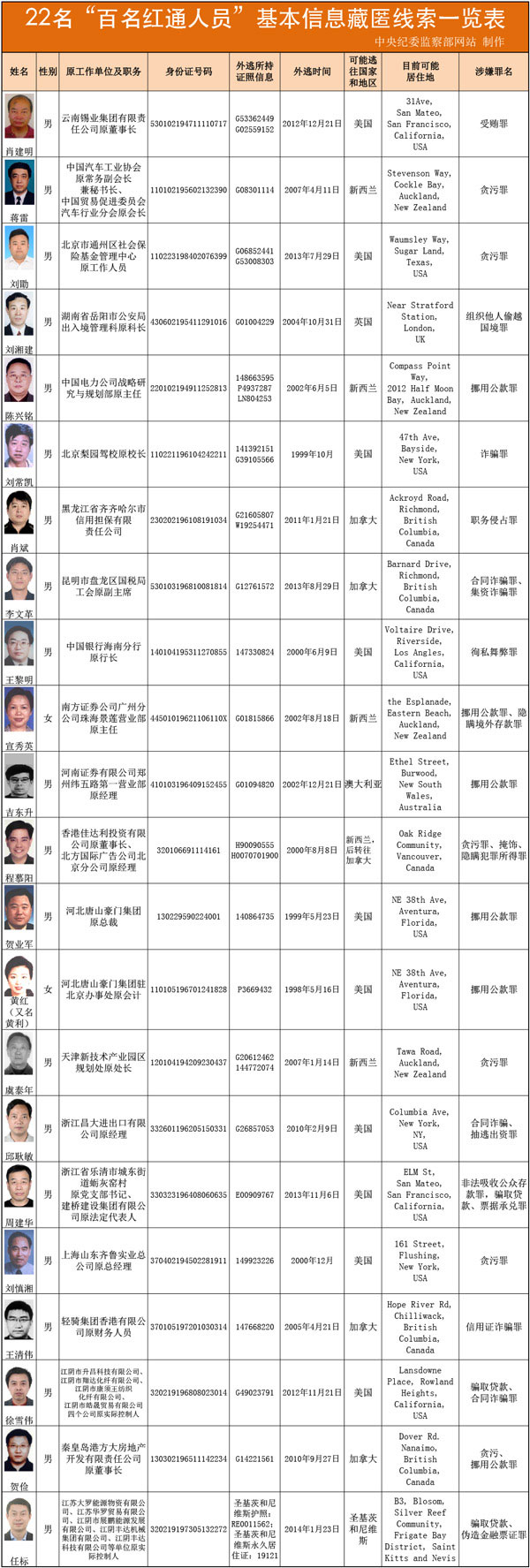 22名百名红通人员基本信息藏匿线索Nè?h?